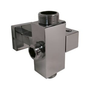 Inversor para conectar columnas de ducha a grifería directa. Diseño cuadrado para columnas cuadradas. Medidas de conexión: Conexión columna: M3/4 Conexión al flexo: M1/2 Conexión al grifo: H1/2