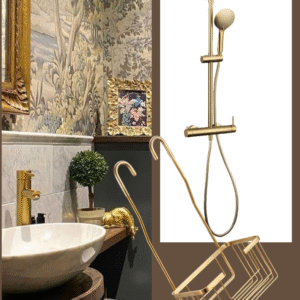 Fabricada en acero inox acabada en oro cepillado. Extensible de 79,5cm a 122cm. Distancia de pared a rótula del duchón: 39,5cm. Conexión Directa a monomando color oro cepillado con inversor integrado. Compuesta por: 1 Barra de ducha acabado en oro cepillado 1 Mango de ducha circular 2P acabado en oro cepillado 1 flexo PVC acabado en oro 1,50m 1 Duchón antical circular extraplano 20cm de diámetro acero inox acabado en oro cepillado