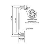 Asa 46 cm fabricada en Acero Inoxidable 304. Embellecedor roscado para ocultar los tornillos. 6 puntos de anclaje, con posibilidad de adaptarse a taladros ya existentes. Acabado cromo brillo. Se suministra en blister.