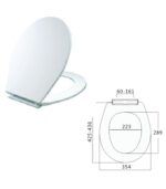 Asiento de inodoro fabricado Polipropileno. Bisagras regulables de 6 cm hasta 16 cm. Se sirve en film retractilado.