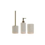 Lote Escobillero + Dosificador + vaso. Fabricado en gres. Color mate beige