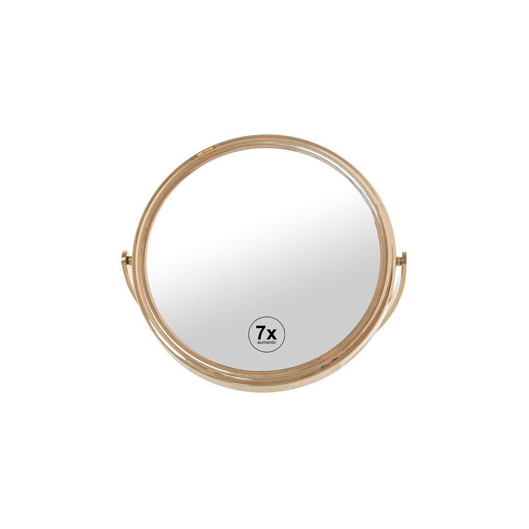 Espejo redondo de 7 aumentos acabado en oro rosa. Se suministra en caja.