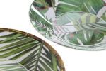 Fabricado en melamina con diseño de hojas verdes.