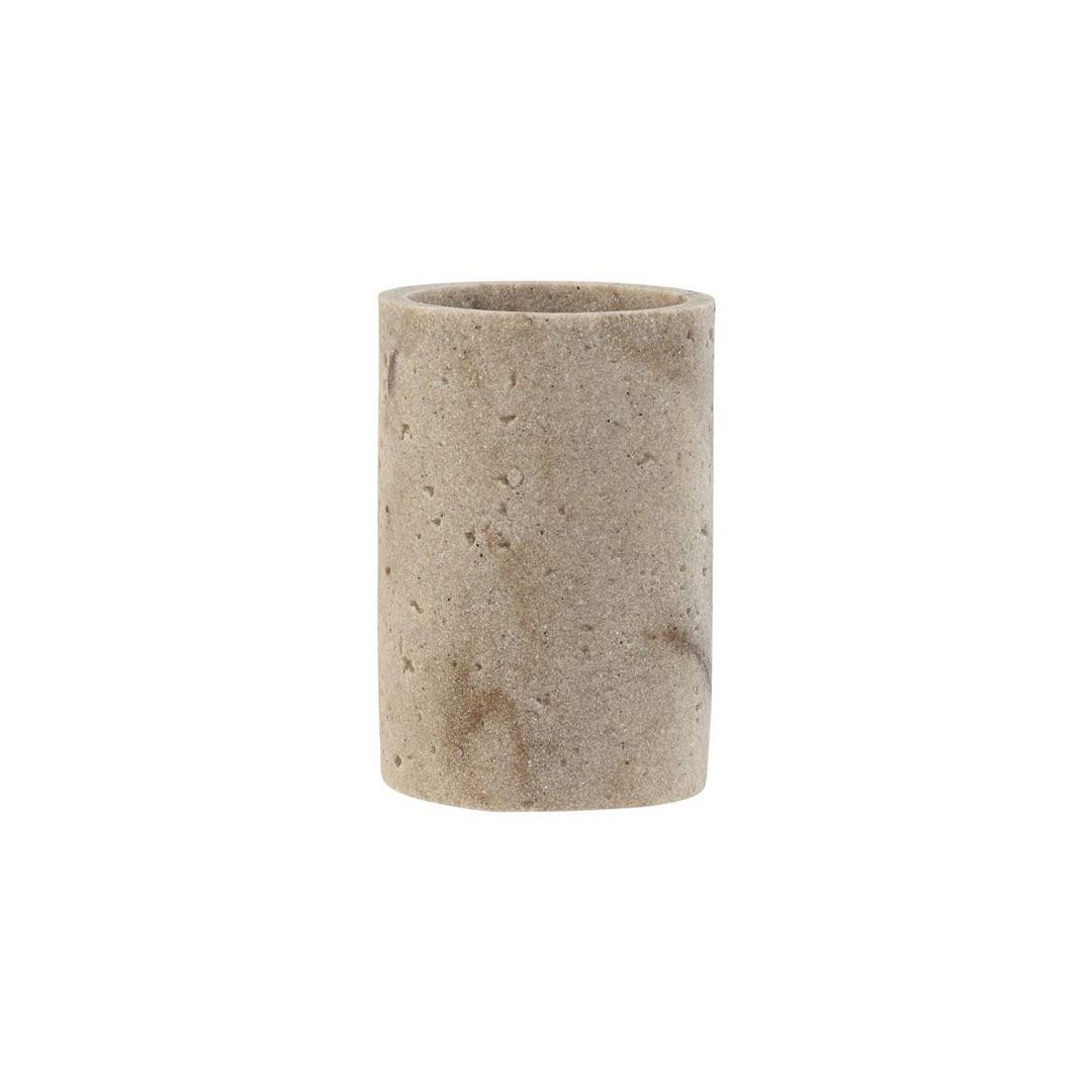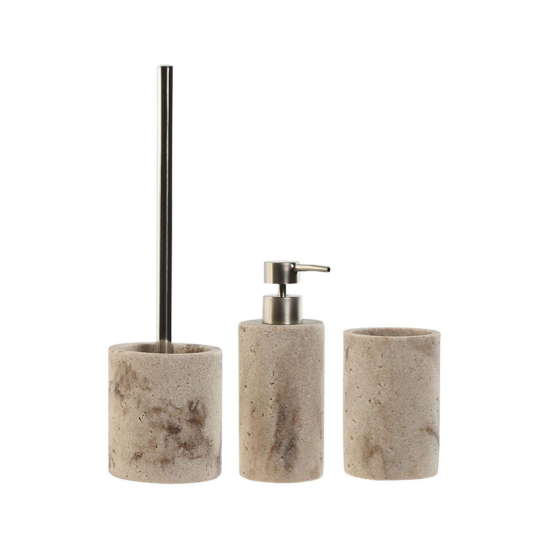 Lote Escobillero + Dosificador + Vaso. Fabricado en resina. Color beige