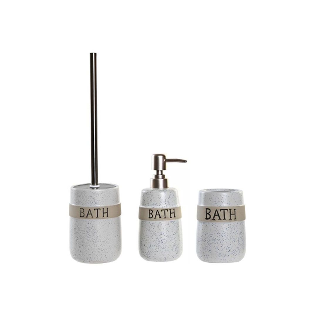 Lote Escobillero + Dosificador + Vaso. Fabricado en gres Inox. Color blanco moteado