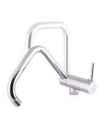 Fabricado en latón. Cromado. Cuerpo abatible hacia adelante y hacia atrás. Altura abatido 6cm. Base de latón incluida. Giro caño 360º. Se suministra en caja