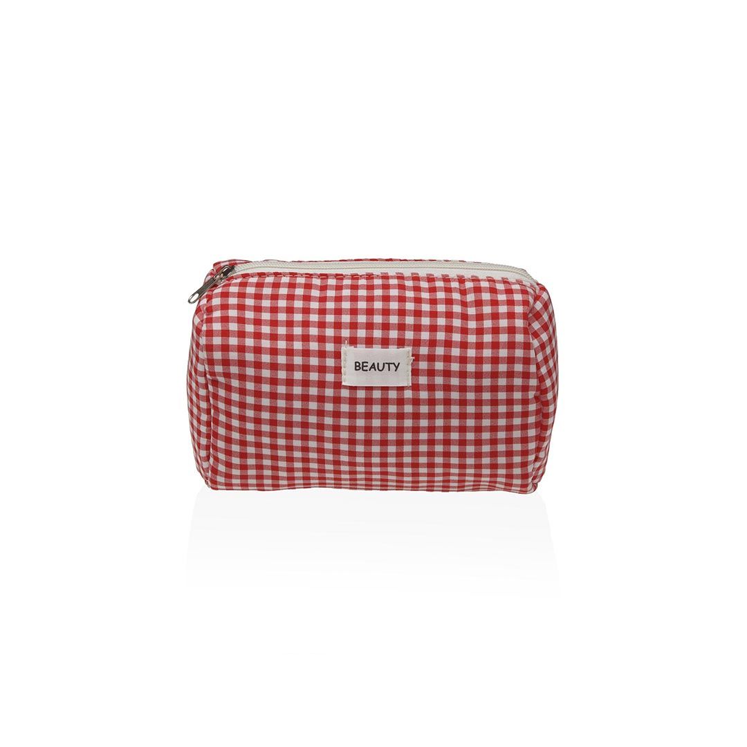 Neceser multiusos diseño estuche cuadros rojos con cremallera
