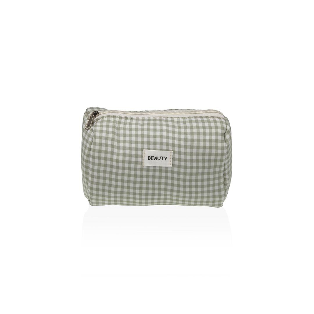 Neceser multiusos diseño estuche cuadros verde con cremallera