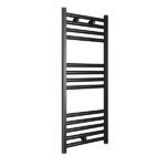 Fabricado en Acero. Lacado en Negro. Radiador secatoallas de circuito de calefacción. Incluye tapones, soportes y purgador.Juego de llaves bitubo incluidas. 321 kcal. Consulte con un profesional para su instalación. Disponible también en 50cm de ancho. Adecuado para espacios más reducidos.